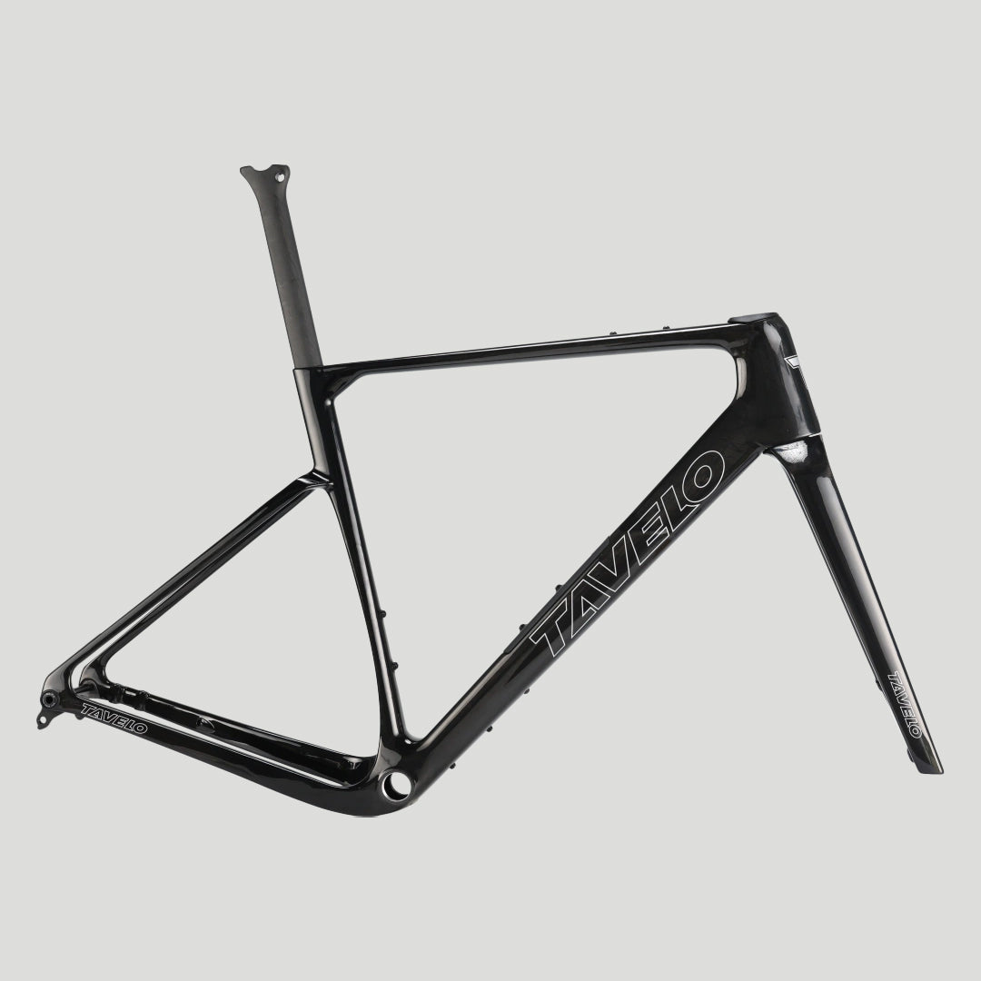 Cuadros Tavelo diseñados para rendir: carbono de alto nivel, geometrías optimizadas y una estética limpia para montar bicicletas rápidas, ligeras y sin concesiones.